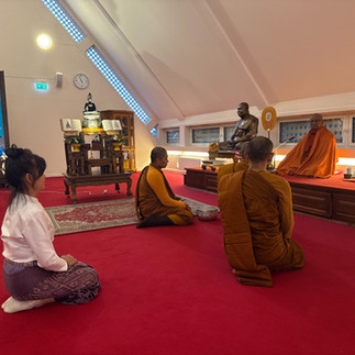 Etter å ha fullført Songkran-seremoniene ved klosteret, reiste munkefellesskapet (Sangha) for å vise respekt og motta nyttårsvelsignelser fra abbeden ved Wat Thai Norway (Phra Rajvachirasasanavides).