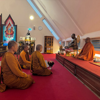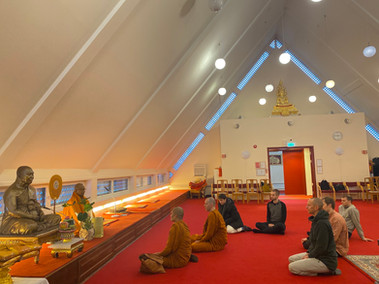 Lørdags online Dhamma-meditasjon: Vi har æren av å ha Ajahn Srisak, Ajahn Chanaphairi og Ajahn Maha Sombhop til å regelmessig lede chanting- og meditasjonsøktene.